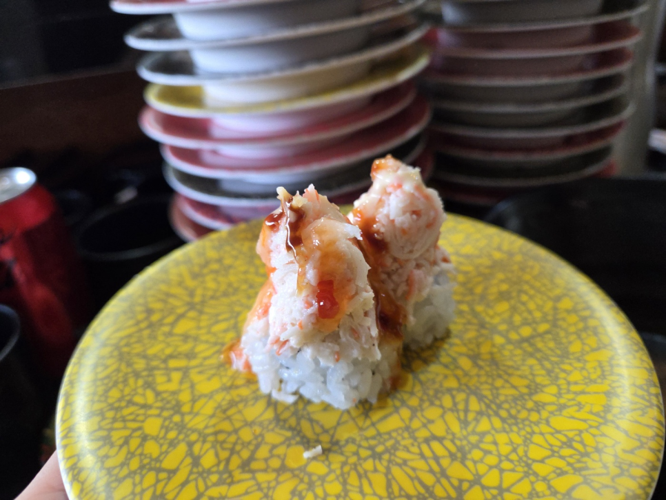 롤은 잘 안먹는데 위에 쌓인게 먹음직스러워보여서 집었다.