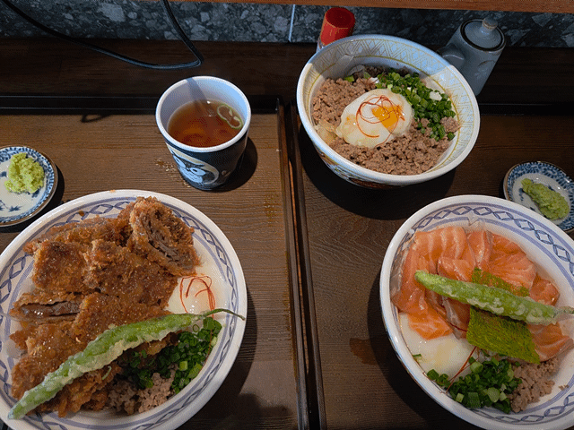 규카츠동, 사케동, 소보루동